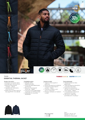 •  Recycled Thermoguard    •  Dauerhaft wasserabweisende   •  Finitura idrorepellente resistente  •  Trwała impregnacja zewnętrzna