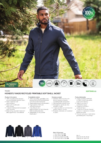 • 100% recycled warm-backed • 100% recyceltes, gewebtes und • Softshell 100% riciclato con • Ciepło podszyty Softshell,