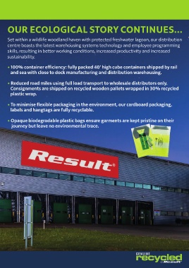 • Reduced road miles using full load transport to wholesale distributors only. • Air freight-free