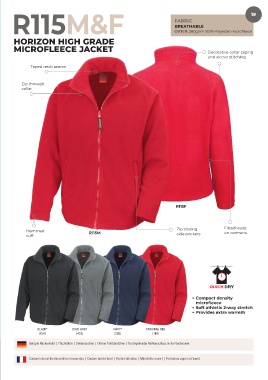 R115F XS-2XL Coutures du col thermocollées recouvertes | Couture bord à bord | Poches latérales | Manchette ouvert | Fermeture zippée à l’avant