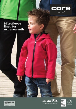 AGE: 3-14 3 LAYER SOFTSHELL Facile à porter, facile d’entretien | Se lave et sèche en quelques minutes | Tirettes pour faciliter l’ouverture du zip avant