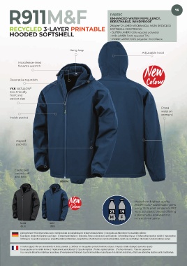 CASE: 20 PACK: 5 3 LAYER SOFTSHELL Tissu recyclé utilisant les matériaux respectueux à l’environnement fabriqués à partir de bouteilles en plastiques et de déchets industriels, offrant une alternative durable aux fils traditionnels.