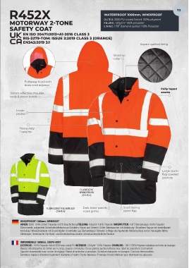 R452X 50mm breite, aufgenähte Sicherheitsreflektoren an Schultern, Körper und Ärmeln | Größe Seitentaschen mit Abdeckung | Einrollbare Kapuze mit verstellbarem