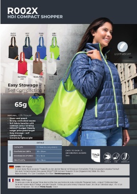 In einem kleinen Beutel verstaubar | Tragegriffe aus dem gleichen Material mit Einfassung in Kontrastfarbe | Einfach einzupacken-kompaktes Packmaß