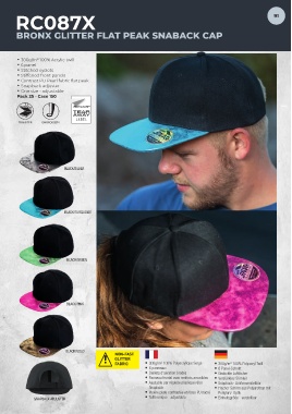 • Pre-curved peak with 6 stitch lines • Contrast PU Pearl fabric flat peak