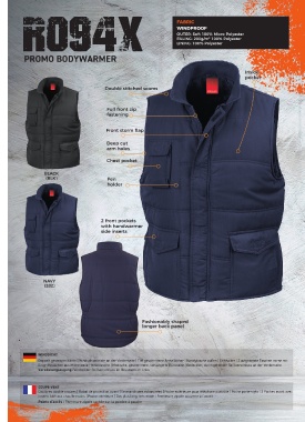 Doppelt gesteppte Nähte | Windschutzleiste an der Vorderseite | Tief geschnittene Ärmellöcher | Handytasche außen | Stifthalter | 2 aufgesetzte Taschen vorne mit