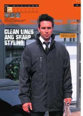 Rabat interne à l’encolure pour la marque du client | Fermeture zippée à l’avant | Poche poitrine zippée | Rabat de protection fermé par boutons pression | Coutures