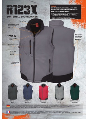 SOFTSHELL BODYWARMER 320g/m2 3 LAYER BONDED FABRIC COMPRISING: