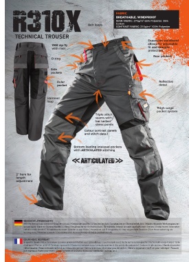 R310X Belt loops FABRIC WAIST UK XS 32 rugged durability and performance. XL 2XL rugged durability and performance. rugged durability and performance.