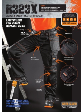 R323X STRETCH FABRIC WATERPROOF specially designed for comfort, TOUGH TPU LABEL 5: R118X, R124X, R132M&F STRETCH WAIST UK XS 32 34 36 XL 2XL 3XL 4XL 5XL TOUGH AND DURABLE 69