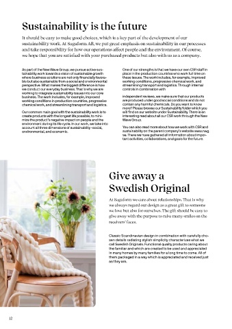 sustainability work. At Sagaform AB, we put great emphasis on sustainability in our processes