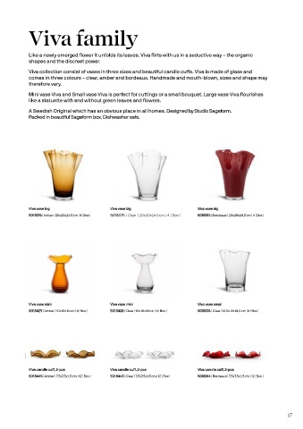 Viva collection consist of vases in three sizes and beautiful candle cuffs. Viva is made of glass and