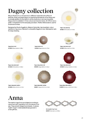 textures. Bowl and plate Dagny is inspired by the beauty of the Daisy and