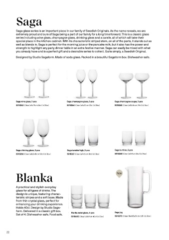 Saga glass series is an important piece in our family of Swedish Originals. As the name reveals, we are
