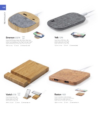 Charger. Felt RPET/ Bamboo. Wireless 15W. 1 USB and 1 Type C Output. Charger. Polyester RPET. Wireless 10W.