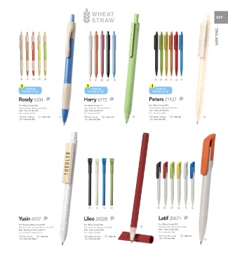 Pen. Bamboo/ Wheat Straw/ PP. Pen. Wheat Straw/ ABS. Pen. Wheat Straw/ ABS.