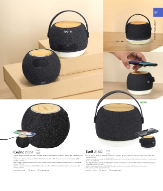 Charger Speaker. Polyester 300D RPET/ Bamboo. Wireless 15W. Bluetooth Connection. Sound Power 5W. Battery 1200 Charger Speaker. Polyester 300D RPET/ Bamboo. Led Lights. Wireless 15W. Bluetooth Connection. Sound Power 5W.