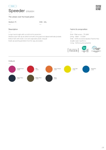 Reverse nylon half zip at centre front with chin guard and zipped welt side pockets Lining - Mesh - 75 GSM