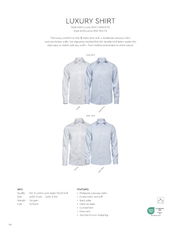 Quality 100 % cotton yarn dyed 100/2 twill • Moderate cutaway collar