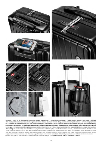 17” o MacBook 16’’. Smart charging port con uscite USB e Type-C per ricaricare i propri dispositivi mediante power bank alloggiato all’interno del trolley