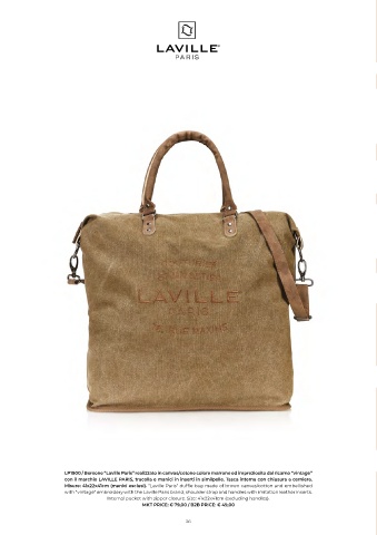 LP1900 / Borsone “Laville Paris” realizzato in canvas/cotone colore marrone ed impreziosito dal ricamo “vintage” CP3234G / Trolley cabina in ABS con 4 ruote multidirezionali. Chiusura a combinazione a 3 cifre, carrello regolabile