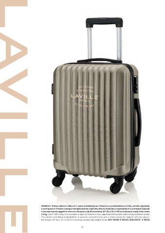 MKT PRICE: € 79,00 / B2B PRICE: € 49,00 Dimension: 20” (34 x 22 x h 56 cm including wheels). Net weight 2.6 kg. MKT PRICE: € 195,00 / B2B PRICE: € 110,00