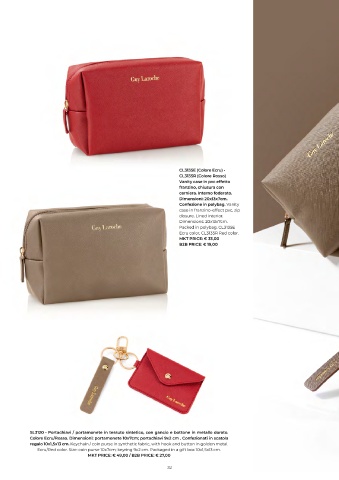 regalo 10x1,5x13 cm. Keychain / coin purse in synthetic fabric, with hook and button in golden metal. CL3134E (Colore Ecru) • Borsa da donna a tracolla in materiale sintetico con tracolla regolabile e chiusura con girello.