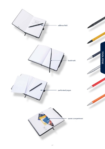 address field bookmark TOOL PENS perforated pages secret compartment 47