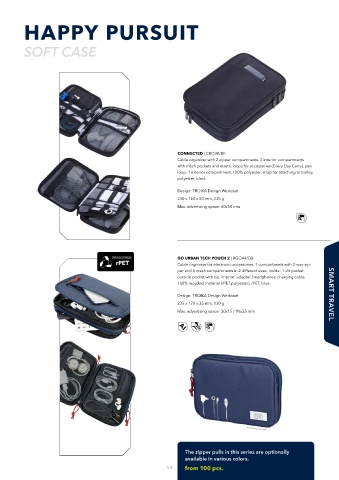 outside pocket with zip, imprint: adapter, headphones, charging cable,