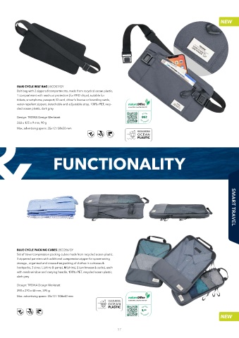water-repellent zippers, detachable and adjustable strap, 100% rPET, recy-