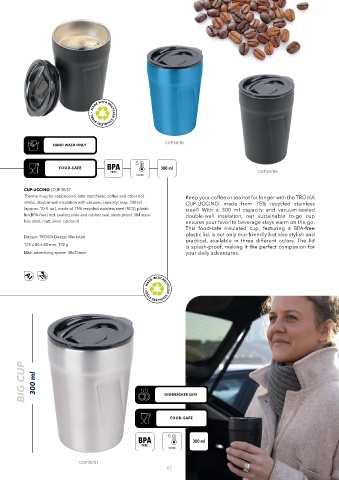 lid (BPA-free) incl. sealing slide and rubber seal, slosh-proof, 304 stain- double-wall insulation, our sustainable to-go cup