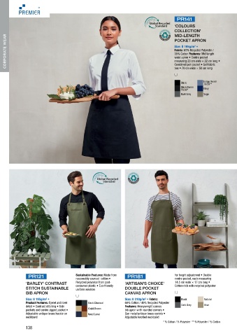 pockets and centre zipped pocket • Khaki/Brown bib apron with rounded corners •