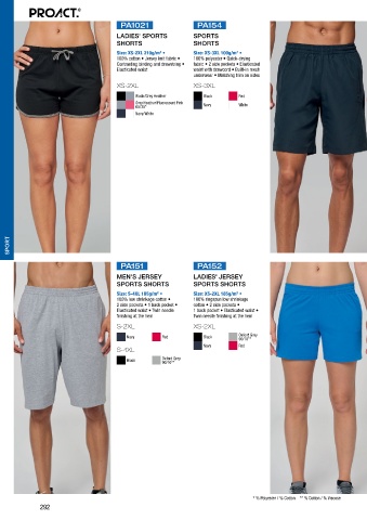 * % Polyester / % Cotton ** % Cotton / % Viscose