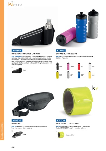 BAG & ACCESSORIES Size: U • Waist bag in 210D polyester ripstop • Front zip pocket • Size: U • High visibility polyvinyl chloride straps • Complies with