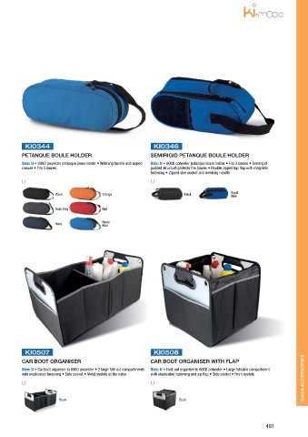 with elasticated fastening • Side pocket • Metal eyelets at the sides with elasticated fastening and zip flap • Side pocket • Front eyelets BAG & ACCESSORIES