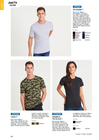JT034 excellent for print or embroidery • JT001F or embroidery • Taped neck • Ribbed