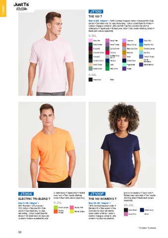 JT004 or embroidery • Taped neck • Ribbed JT100F print or embroidery • Taped neck •