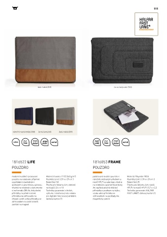 vhodné na notebook a dokumenta- na klopě š 26 x v 18 A4; vepředu plochá vkládací HFL®): na nosiči HFL® š 5,7 x v 2,3