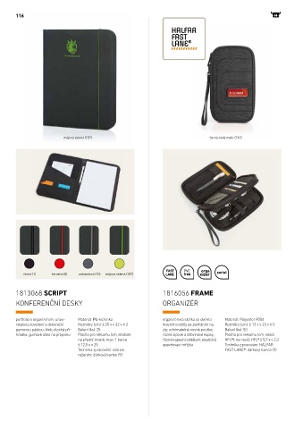 na přední straně, max. 1 barva různá kapesní oddělení; elastická HFL®): na nosiči HFL® š 5,7 x v 2,3