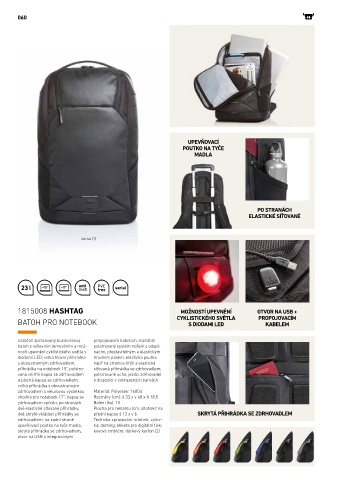 batoh s reflexním lemováním a mož- polstrovaný systém nošení s odepí-