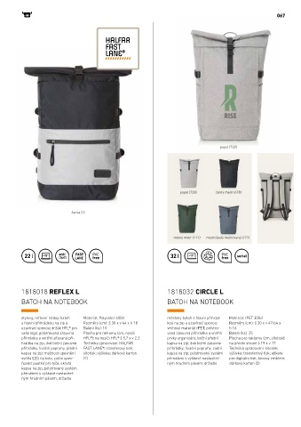 přihrádka a vnitřní síťovaná při- HFL®): na nosiči HFL® š 5,7 x v 2,3 prvky organizéru; boční přední Plocha pro reklamu (cm, sítotisk):