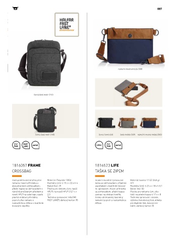 náročně prošívaným předkem a HFL®): na nosiči HFL® š 5,7 x v se zdrhovadlem; přední kapsa Plocha pro reklamu (cm, síto-