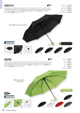 metal-fibreglass ribs, metal tips, rubber-coated handle with loop, polyester pongee canopy, closure with Velcro, sheath with black / white 56-0101252