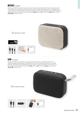 Wireless speaker MESHES: music output 3 watt, to be paired with smartphone, wireless MP3 player, tablet, etc., MP3s are played via slot for