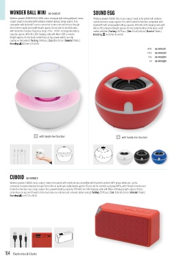 with hands-free function, frequency range: 20 Hz - 20 KHz, rechargeable battery, switch, with feet | Packing: 25/75 pcs. | Size: 9,3 x 8,2 x 8,1 cm | Material: Plastic |