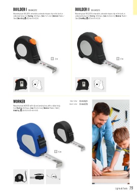 Measuring tape BUILDER I: retractable, automatic stopper, clip on the back, in Measuring tape BUILDER II: retractable, automatic stopper, clip on the back, in