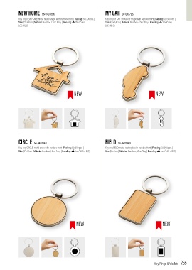 Key ring NEW HOME: metal house shape with bamboo front | Packing: 50/300 pcs. | Key ring MY CAR : metal car shape with bamboo front | Packing: 50/300 pcs. |