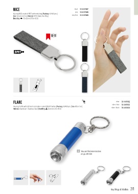 Key ring FLARE with LED torch and rubber-coated ON/OFF button | Packing: 50/400 pcs. | Size: Ø1,5 x 7 cm |