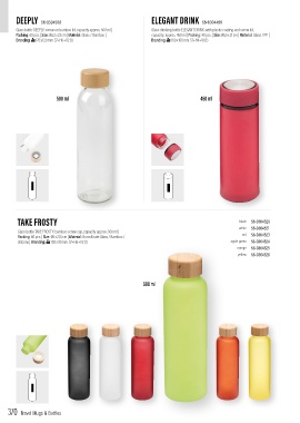 Glass bottle DEEPLY: screw-on bamboo lid, capacity approx. 500 ml | Glass drinking bottle ELEGANT DRINK: with plastic coating and screw lid,
