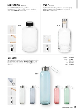 Glass bottle DRINK HEALTHY: with screw lid, in a cotton bag, Glass drinking bottle PEARLY: silicone cork for sealing, capacity approx. 750 ml |
